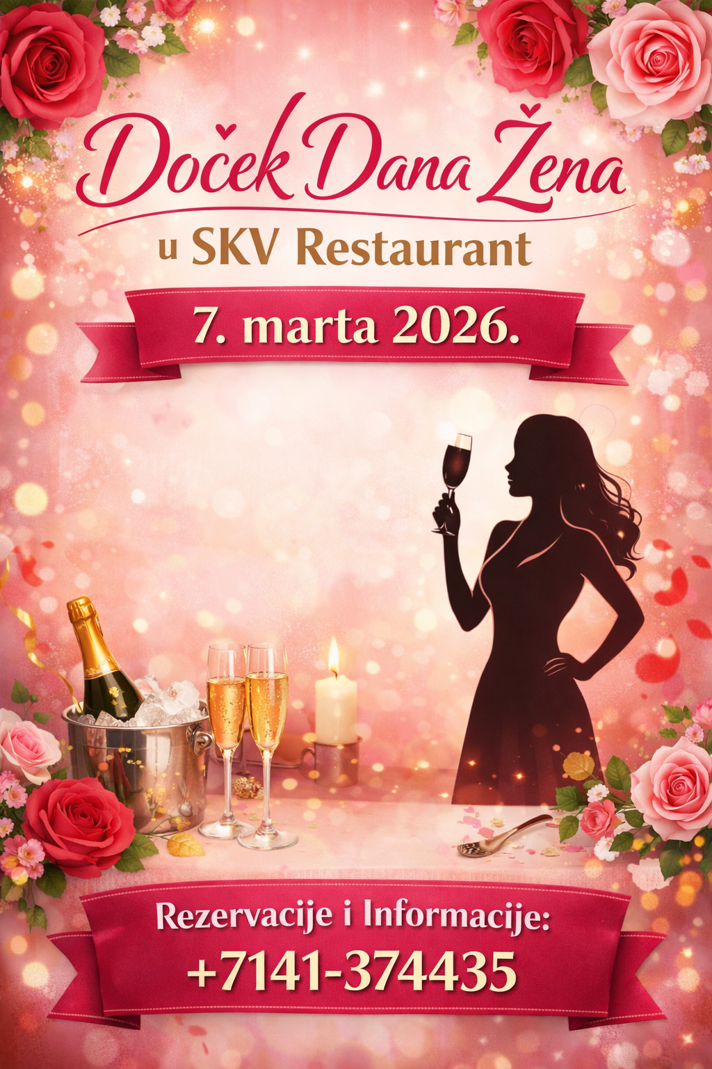 Sa zadovoljstvom vas pozivamo na doček Dana žena koja će se održati u našem restoranu SKV Eglosheim. Očekuje vas nezaboravna večer ispunjena smijehom, toplim emocijama i sjajnom atmosferom. Ovaj posebni doček planiran je za 7. 3. 2026. godine s početkom u 19:00 sati.